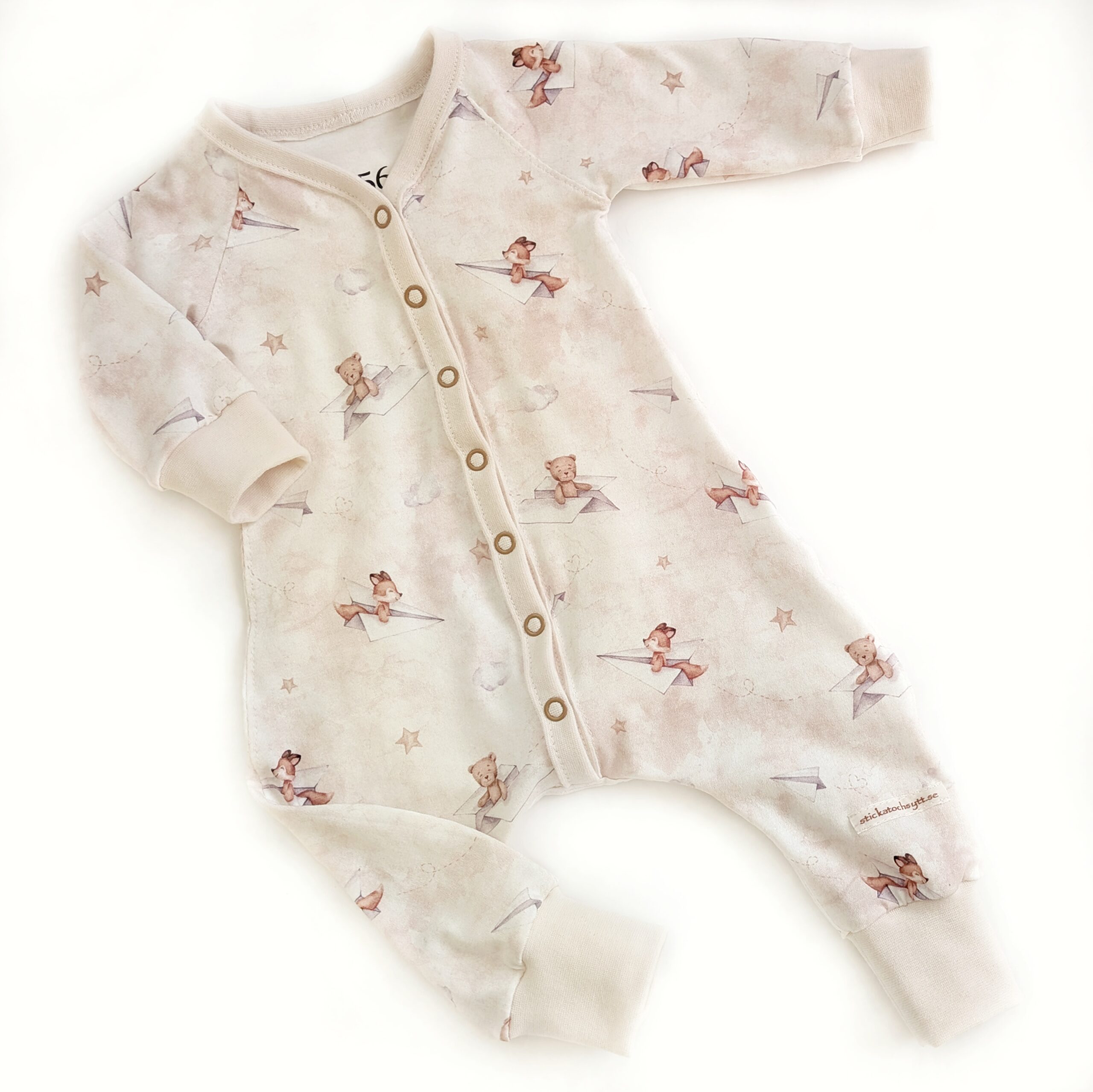 . 1-2 månader, storlek 56 – Baggydress med flygande nallar på beige