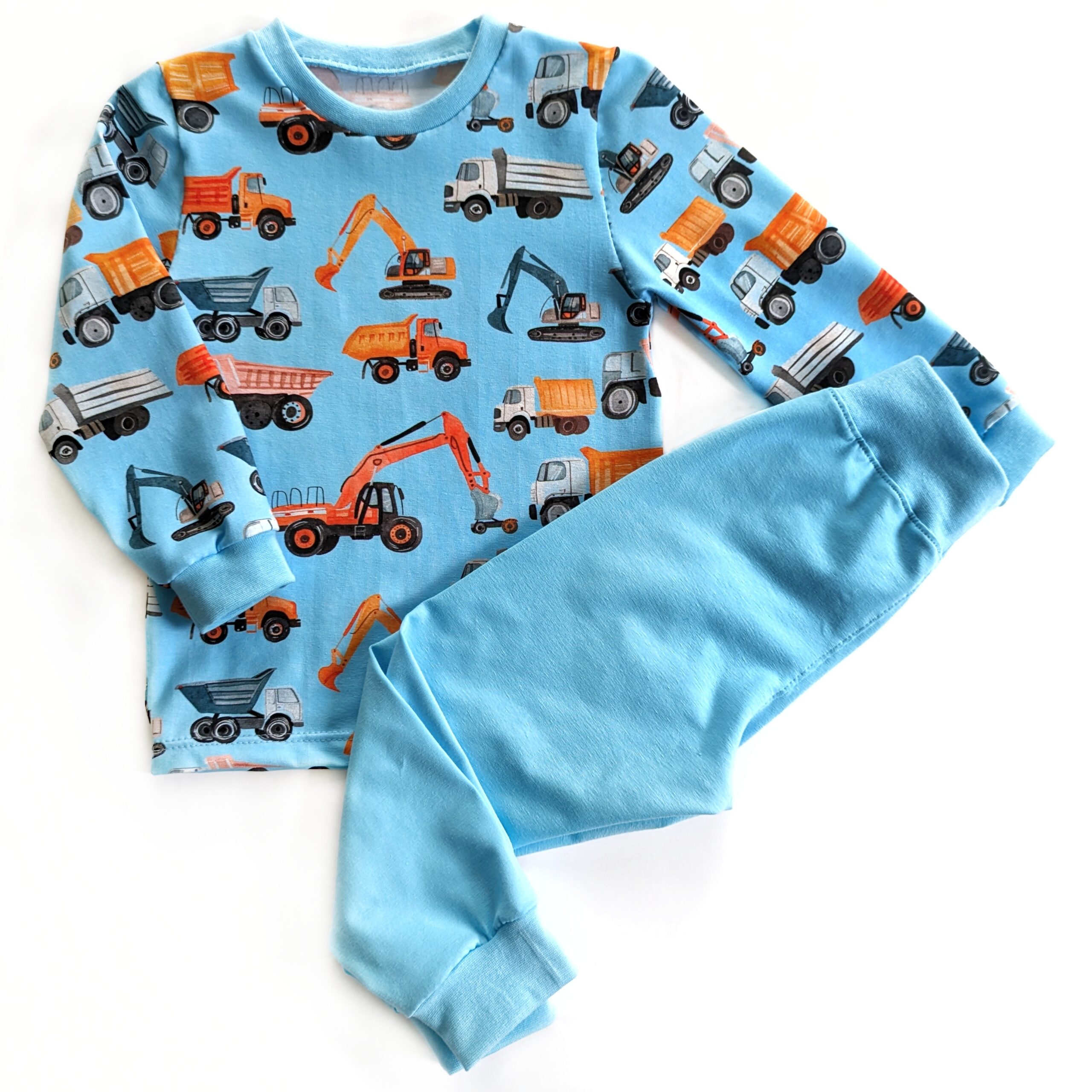 Bli först med att recensera ”1,5 – 2 år, storlek 92 – Långärmad t-shirt med byggfordon + turkosblå byxor”
