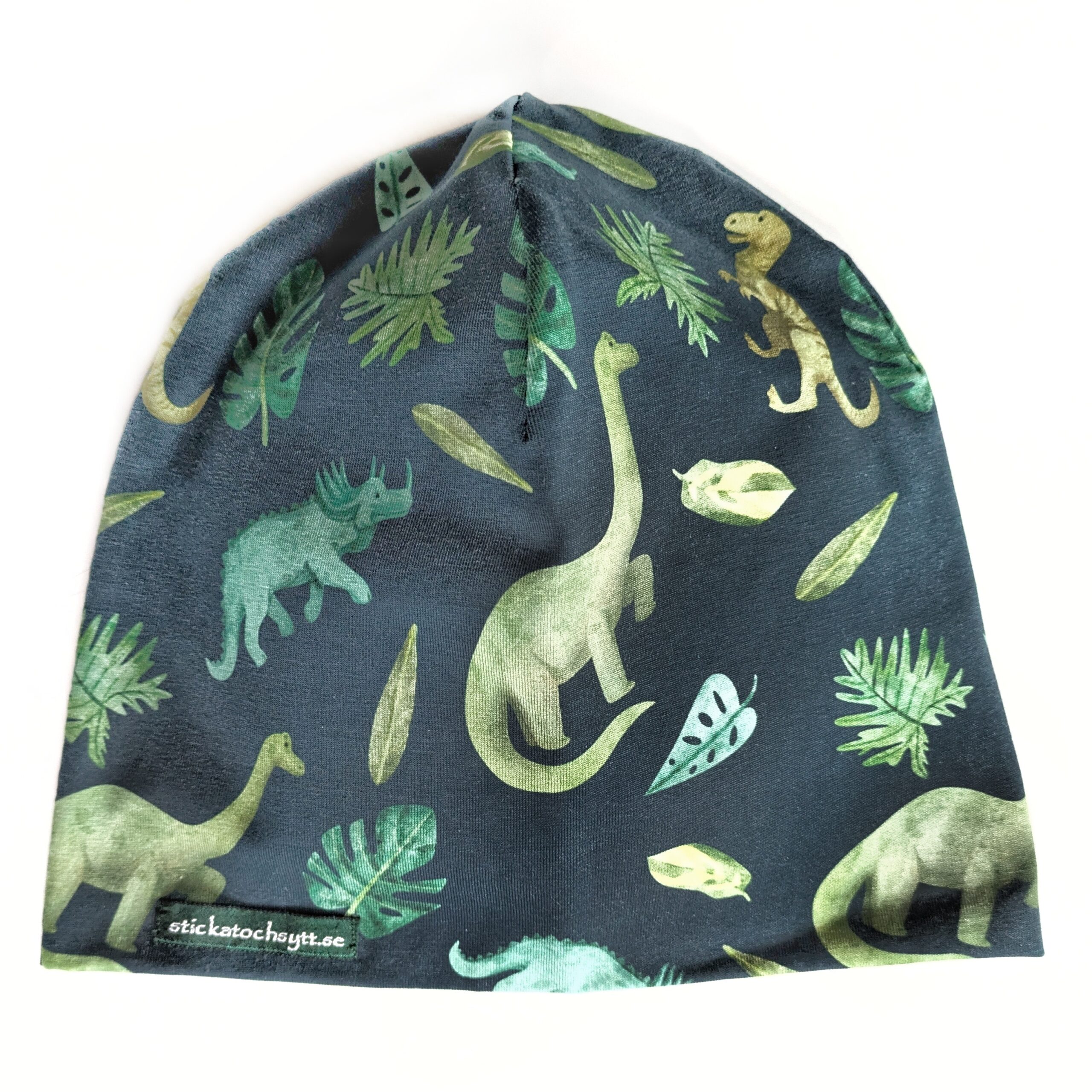 Mössa storlek 50/52, 2-4 år – Dinosaurier på grönt