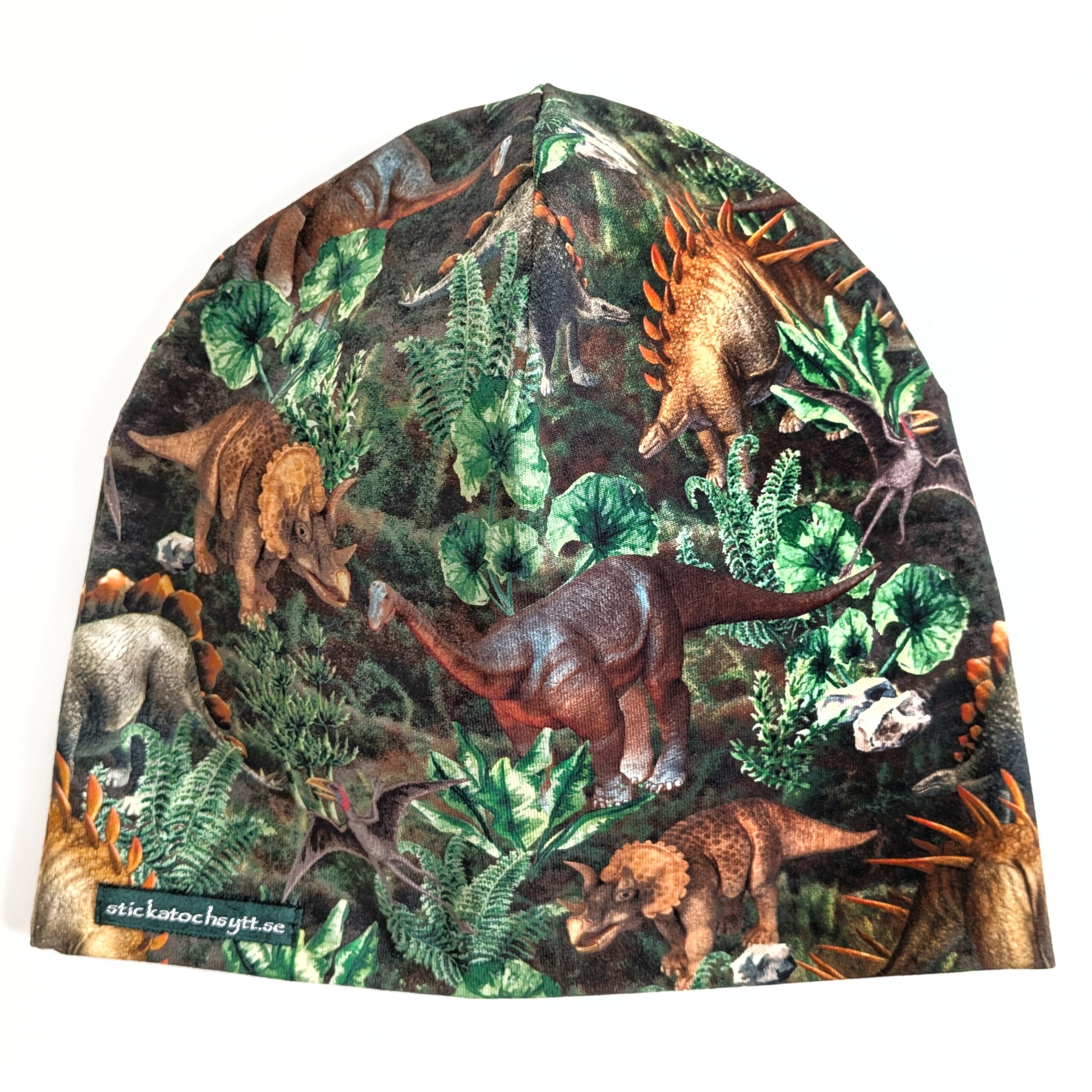Mössa storlek 52/54, 4-6 år – Dinosaurier på grönt