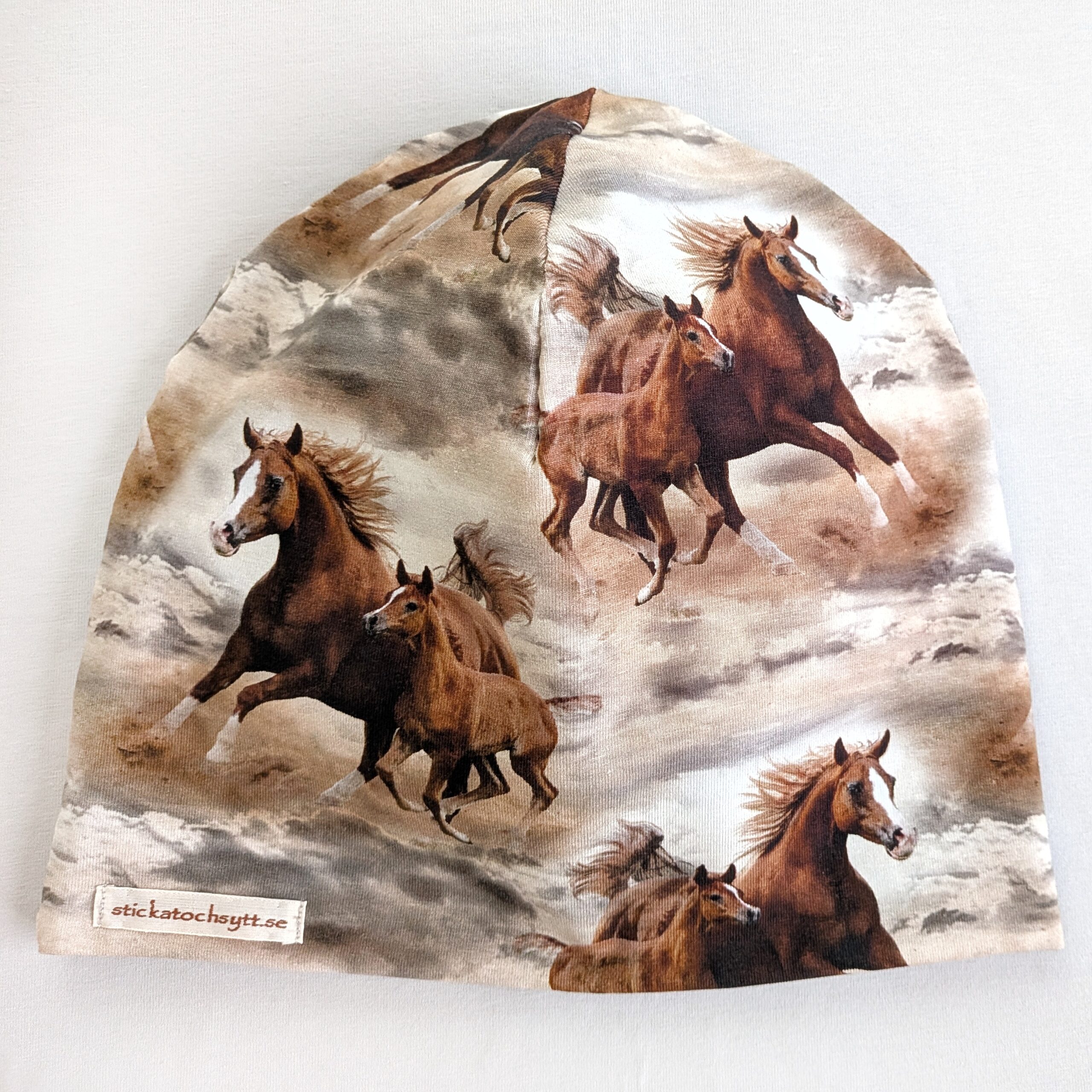 Bli först med att recensera ”Mössa storlek 54/56, 6-8 år – Hästar på brunt”